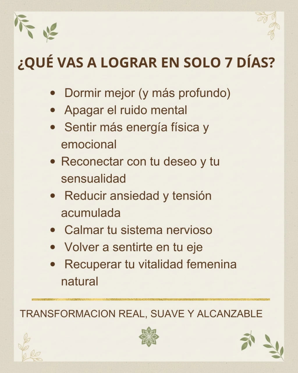El método de 7 días para dormir bien, reconectar con tu deseo y recuperar la calma mental.
